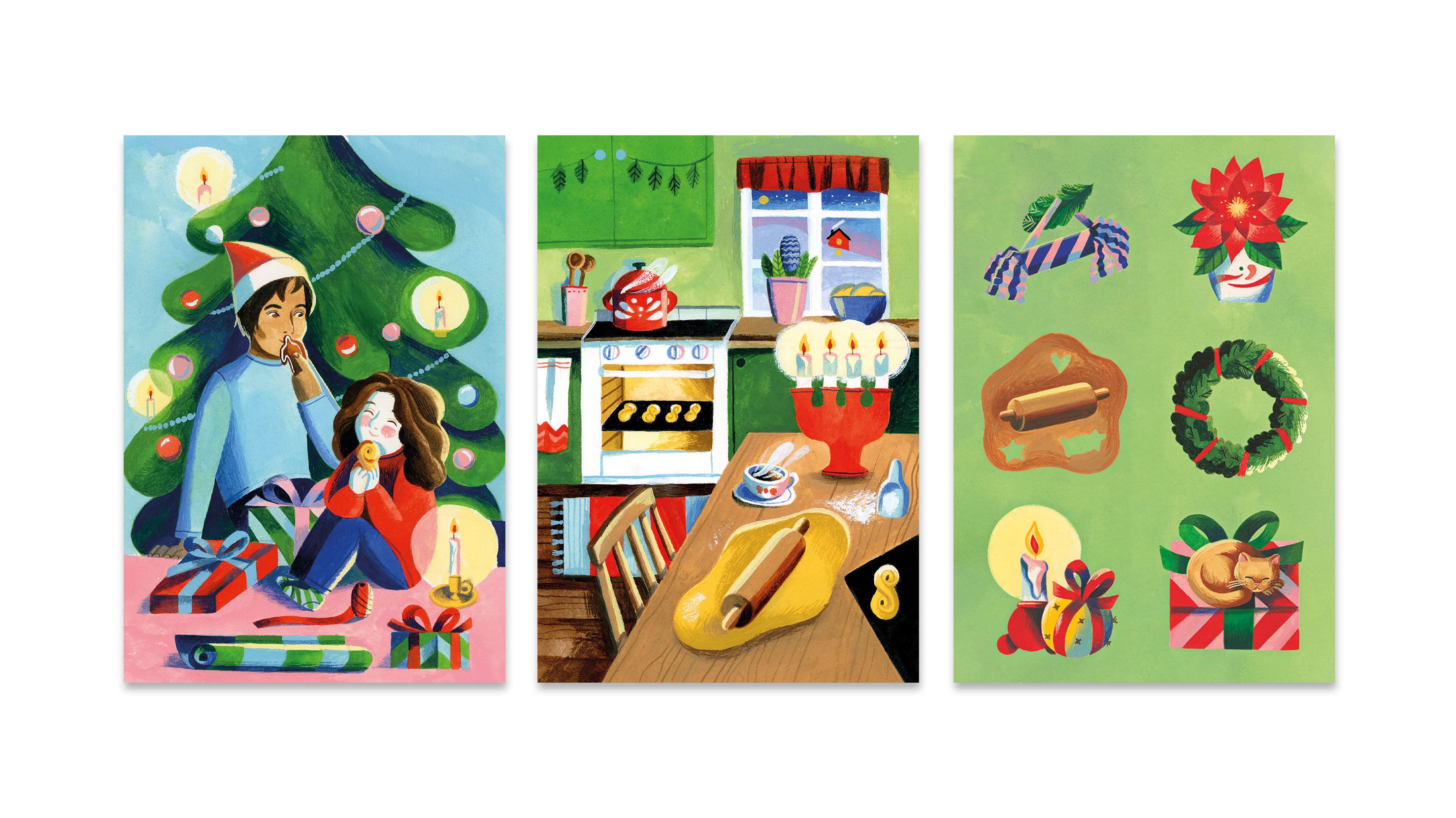 Varje år bjuder vi på julkort som går att hämta gratis hos våra ombud. I år har Amanda Berglund illustrerat två kort och även juliga klisterdekaler med motiv som höjer julstämningen.
